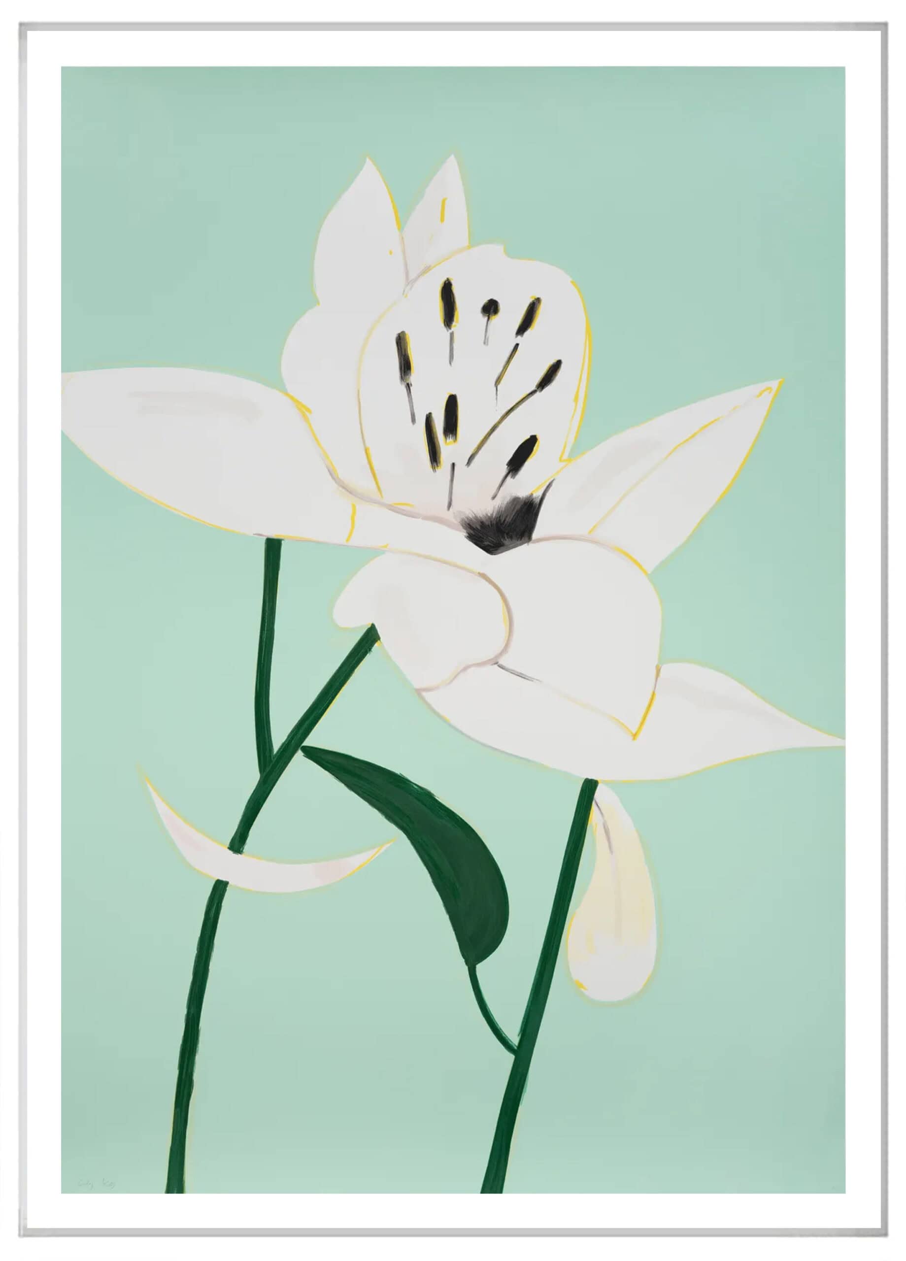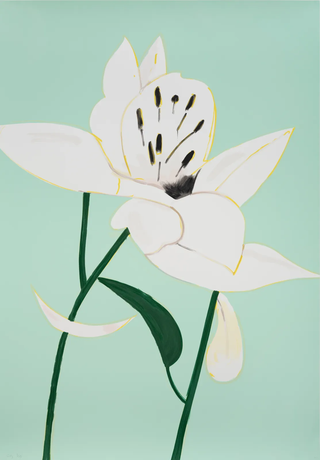 Alex Katz White Lilies 4, 2025 Silkscreen in colors on Saunders paper is hand-signed by Alex Katz (Brooklyn, 1927 - ) in pencil in the lower left and is numbered from the edition of 50.