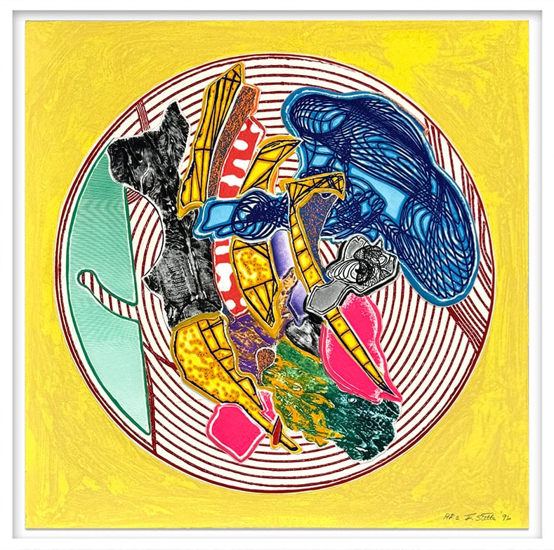 Egyplosis Relief reflects Stella’s embrace of advanced printmaking technologies and collaborative studio practices, marking a decisive evolution from the austere Minimalism of his early career toward a more exuberant and baroque visual language. The work stands as a mature statement within Stella’s oeuvre, affirming his conviction that printmaking could operate as a primary, not secondary, medium—capable of achieving the same conceptual ambition, material complexity, and physical presence as sculpture and large-scale painting.