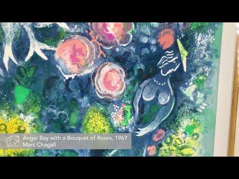 Full of richly deep hues and abundant with texture, Marc Chagall La Baie des Anges au Bouquet de Roses (Angel Bay with a Bouquet of Roses) from Nice and The Côte d'Azur, 1967 illustrates the artist's use of dreamlike imagery set in a Parisian coastal landscape. Evoking a sense of tranquility and beauty, Chagall entices the viewer through the use of symbolic elements and a lyrical use of form. A monumental bouquet stands out against the coastal night scene in Nice, giving the viewer a sense of mystery and intrigue.