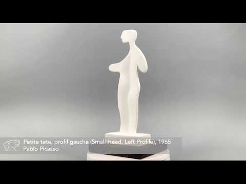 Pablo Picasso Petite tête, profil gauche (Small Head, Left Profile), 1965 A.R. 535 is upon first glance a simple ceramic sculpture. A human figure, formed from a single piece of clay, extends from a rectangular ceramic base. The figure is pleasing in its simplicity – the lower body is fused, with no separate legs. Arms are defined, along with a head and delicate profile of a noise and slightly open mouth. Other than these, the surface is smooth and no other features appear. Though Picasso has only provided the bare basics of a body, the sculpture is endowed with miraculous motion. This is created by the angle of the clay, which casts shadows on the body creating complexity and the appearance of movement. When viewed from different angles and with different sources of light, more intriguing motions come to life. The positioning of the arms, one extended forward and one back, also gives Petite tête, profil gauche (Small Head, Left Profile), 1965 the impression of striding forward. This is helped by the gaze that faces ahead. Using delicate and simplistic outlines Picasso creates a lively sculpture full of movement.